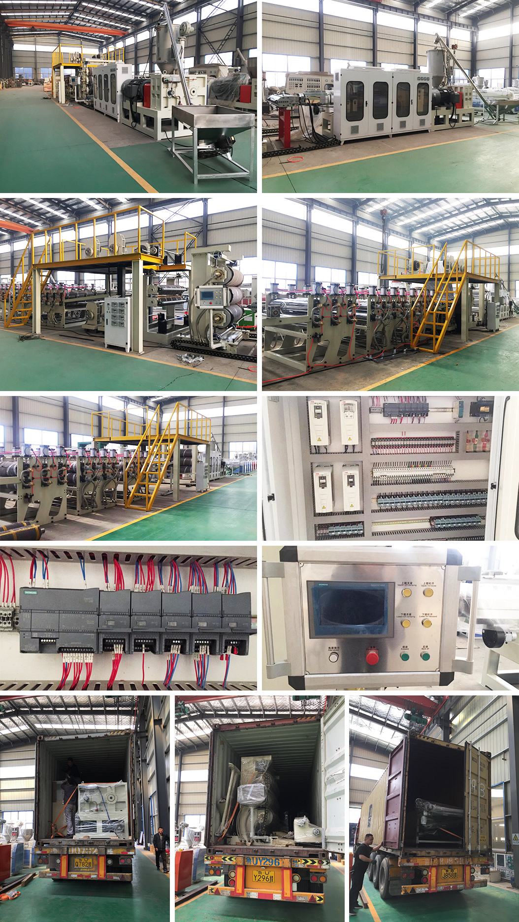 該設備所生產的產品主要適用于內、外墻PE復合板,產品厚度從1-6mm,寬度1200-1500mm的兩種機型,鋁箔厚度從0.03-0.5mm,可選用高分子膜或涂膠的粘合工藝。設備具有一次成型、擠出穩定、復合牢固、平整度好等優點。