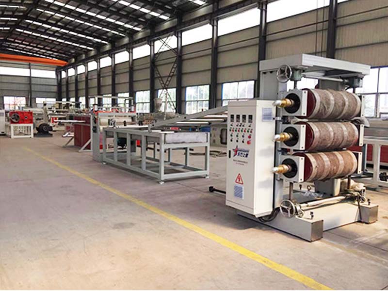 PVC透明軟門簾生產(chǎn)線:可生產(chǎn)寬度200-600毫米、厚度0.8-3毫米的PVC透明塑料片材。該設(shè)備采SJ90或SJ-120單螺桿擠出機(jī)、T型彈性模口可調(diào)模具、立式或斜45度三輥壓光機(jī)、三合一水溫機(jī)、不銹鋼冷卻托架裝并裝有寬幅可調(diào)切邊刀、橡膠輥牽引機(jī)、雙工位氣漲軸收卷機(jī)。所生產(chǎn)的片材表面光澤,通透無暇,柔軟,無裂縫、無異味、無氣泡、柔軟耐寒、耐磨、耐酸堿、耐腐蝕。