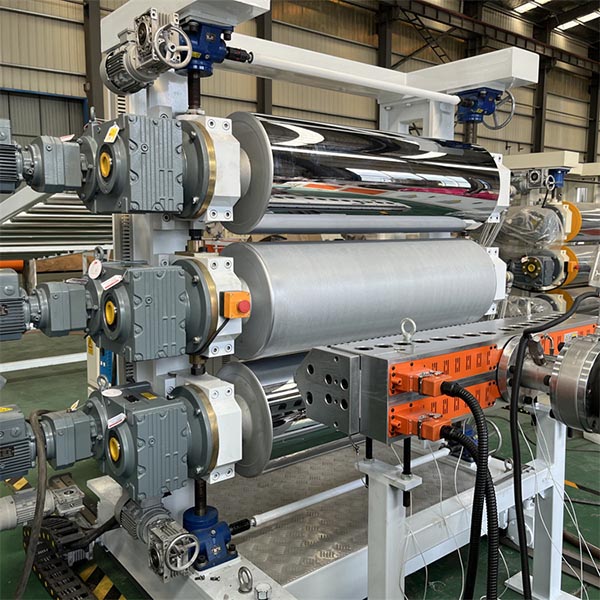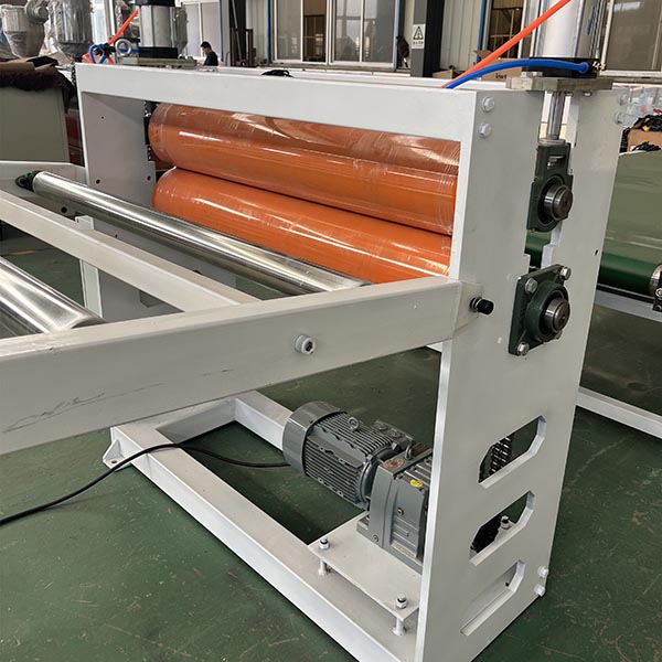軟Pvc片材設備:設備主要有120單螺擠出機,三輥壓光機,冷卻托架,膠輥牽引機,剪板機,輸送帶裝置組成,軟Pvc片材設備產品標準寬度1000mm,厚度6mm,Pvc龜背板設備可生產龜背紋,橘皮紋,方格紋各種紋路,軟Pvc片材設備可根據客戶要求加工訂制設備,軟Pvc片材設備主要用于豬舍建設,各種獸用養殖,建筑工程,游泳池建。